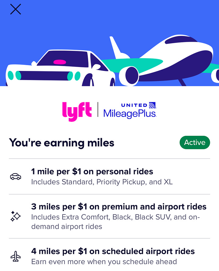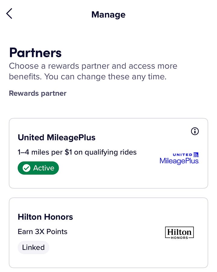 Iām usually an Uber girly, but I got a Lyft notification that I had a promo so I opened the app to claim it. I didnāt end up needing a ride anywhere this week, but I found a very cool travel hack! On Lyft you can link both your United and/or Hilton accounts to earn miles/points. For United MileagePlus, earn 1-4 miles per $1 on qualifying rides. With Hilton Honors, earn 3x points. You can link both of them, but then choose which program is āactive.ā I canāt find the terms on the Hilton deal, but showing a screenshot of what the United promo looks like. On Uber, I have my account linked with Marriott Bonvoy. Free points, might as well take advantage!